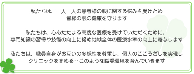 眼のホームドクターとして、地域の皆様に信頼できるクリニックを目指しますので、末永くよろしくお願い致します。